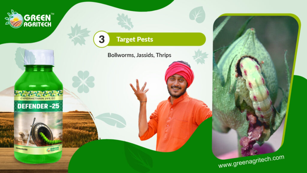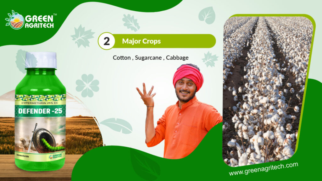 Cypermethrin 25% EC is a broad-spectrum synthetic pyrethroid insecticide used in agriculture and public health to control various chewing and sucking pests. The “25% EC” signifies it is an Emulsifiable Concentrate, containing 25% of the active ingredient cypermethrin. It acts as a fast-acting contact and stomach poison that disrupts an insect’s nervous system, offering quick knockdown and long-lasting protection against pests like bollworms, fruit borers, and mosquitoes.