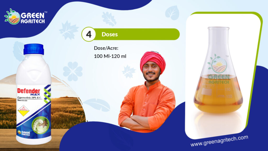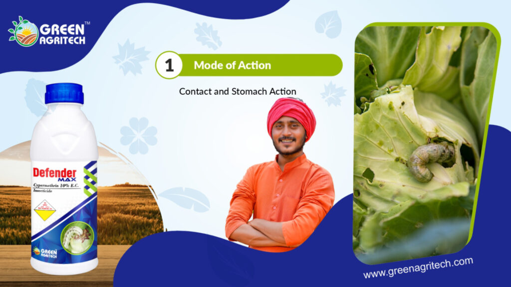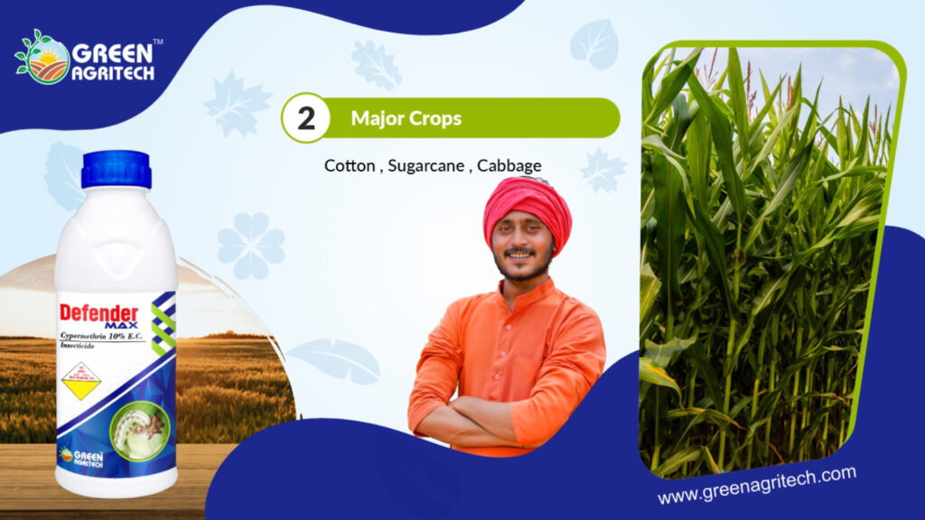 Cypermethrin 10 % E.C, is a synthetic, broad-spectrum insecticide that is a non-systemic, fast-acting neurotoxin with contact and stomach action, belonging to the synthetic pyrethroid class of chemicals. It controls a wide range of agricultural pests on crops like cotton, vegetables, and cereals, as well as public health pests such as cockroaches and flies. The “10 EC” signifies that the formulation contains 10% cypermethrin as an Emulsifiable Concentrate, which is designed to be mixed with water for foliar spraying
