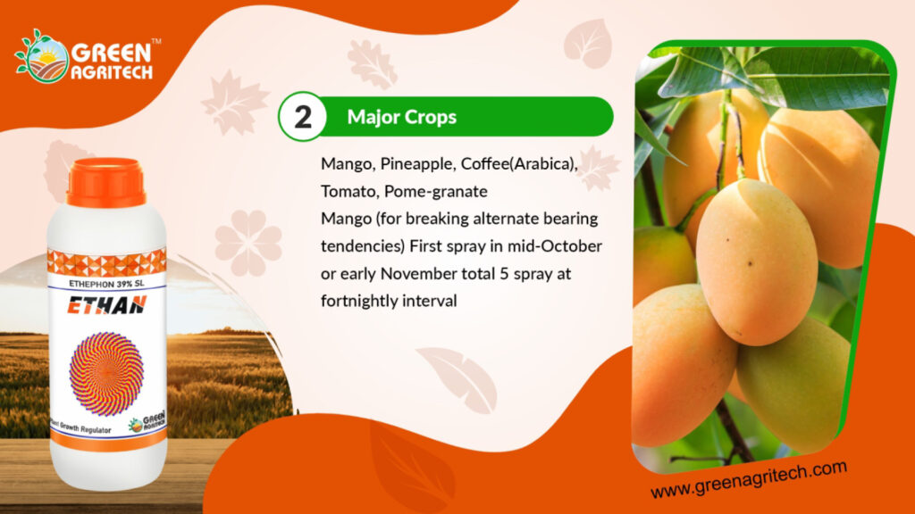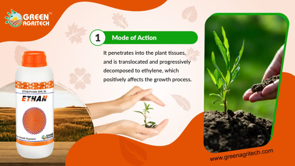 Ethephon 39% SL is a plant growth regulator (PGR) used in agriculture to release ethylene, a natural plant hormone. Its soluble liquid (SL) formulation is used to affect various plant processes, including fruit ripening, flowering, and leaf shedding.