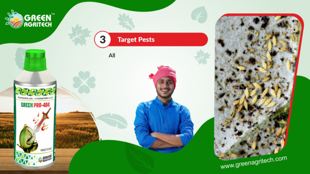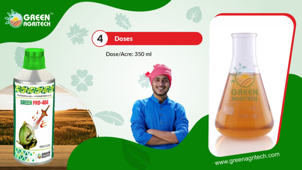 Profenofos 40% + Cypermethrin 4% EC is a combination insecticide for controlling a broad spectrum of chewing and sucking pests in crops. The mixture of two active ingredients provides quick knockdown and long-lasting protection for various vegetables, fruits, and cash crops like cotton