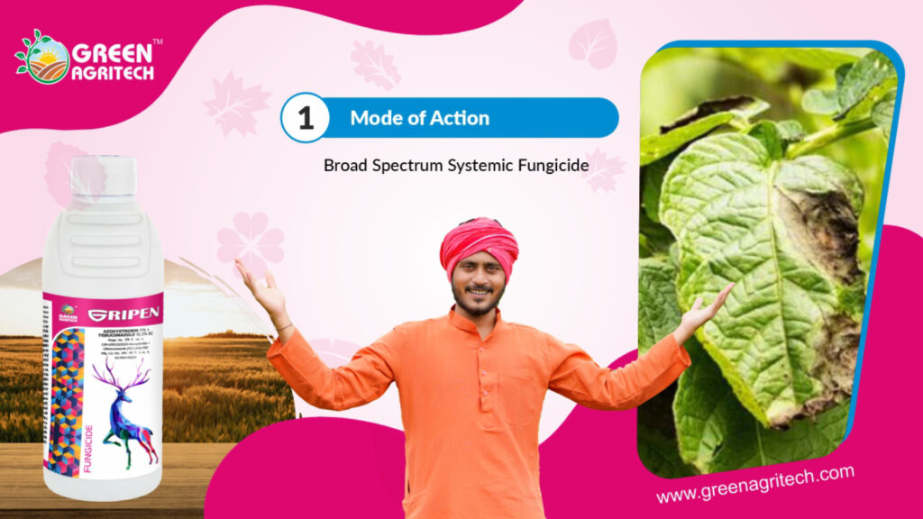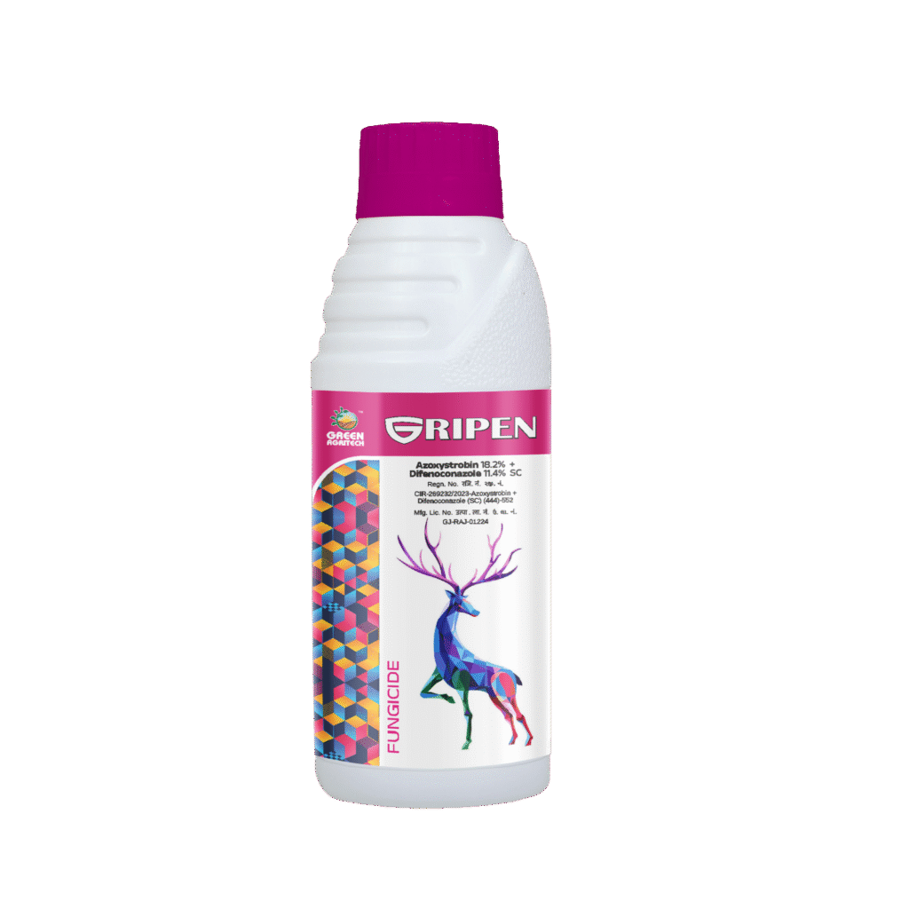 Azoxystrobin 18.2% + Difenoconazole 11.4% SC is a dual-systemic, broad-spectrum fungicide used to protect crops from various fungal diseases. The “SC” designation indicates a Suspension Concentrate formulation, which consists of solid active ingredients dispersed in water