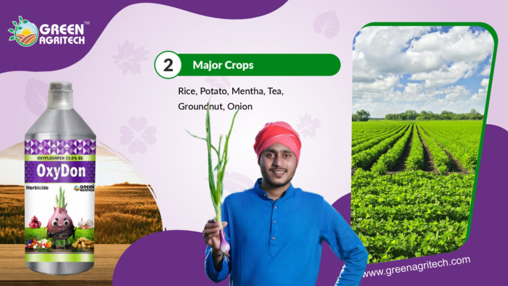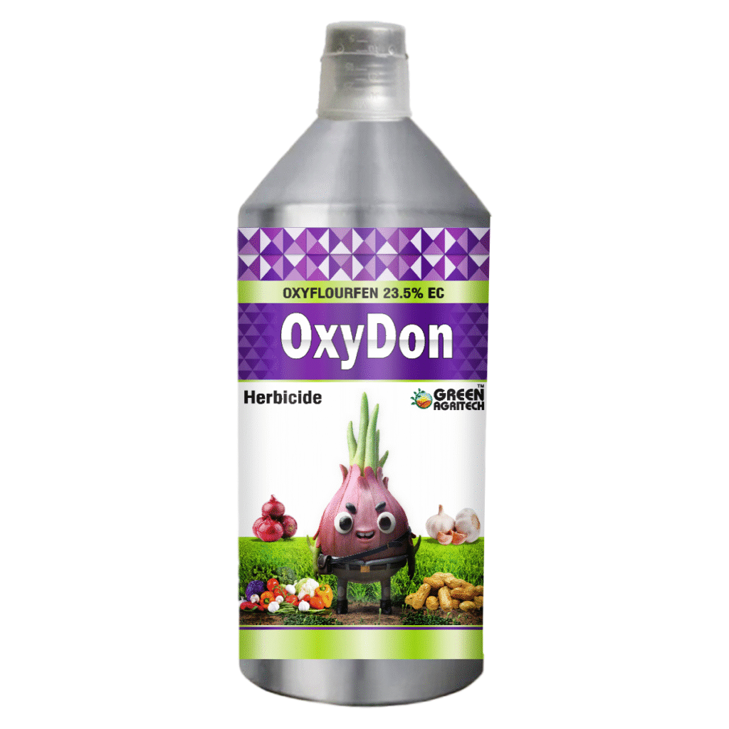 Oxyfluorfen 23.5% EC is a selective, broad-spectrum herbicide used for pre- and early post-emergence weed control in various crops. Its emulsifiable concentrate (EC) formulation makes it easy to mix and apply.