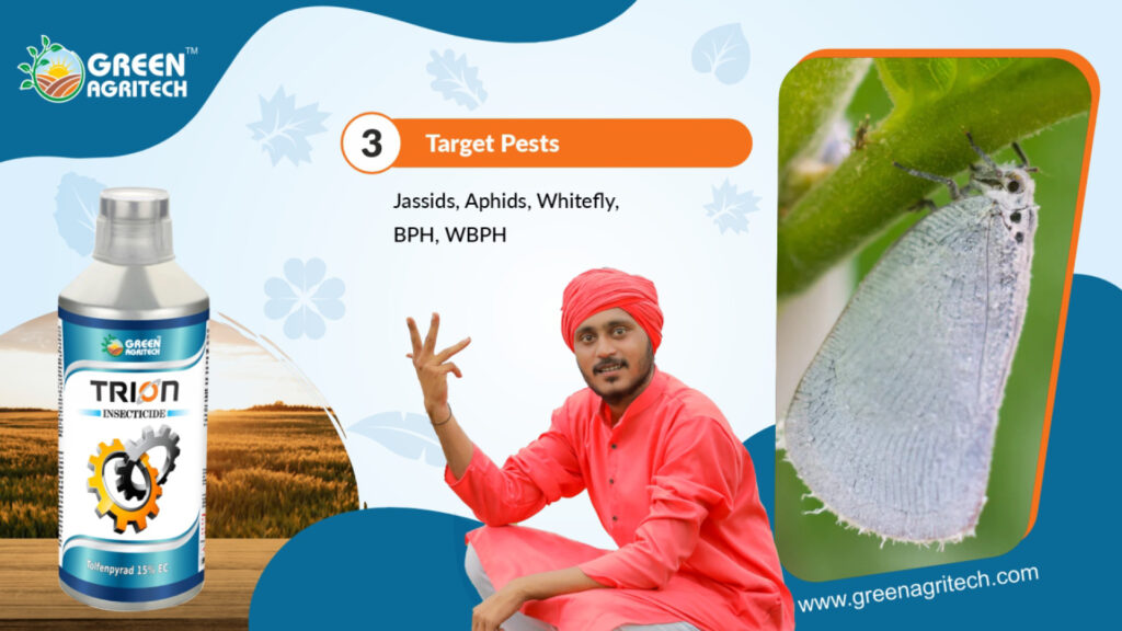 Tolfenpyrad 15 % EC is a broad-spectrum insecticide and fungicide used to control a wide range of sucking, chewing, and biting pests on various crops. It is also effective against some fungal diseases.